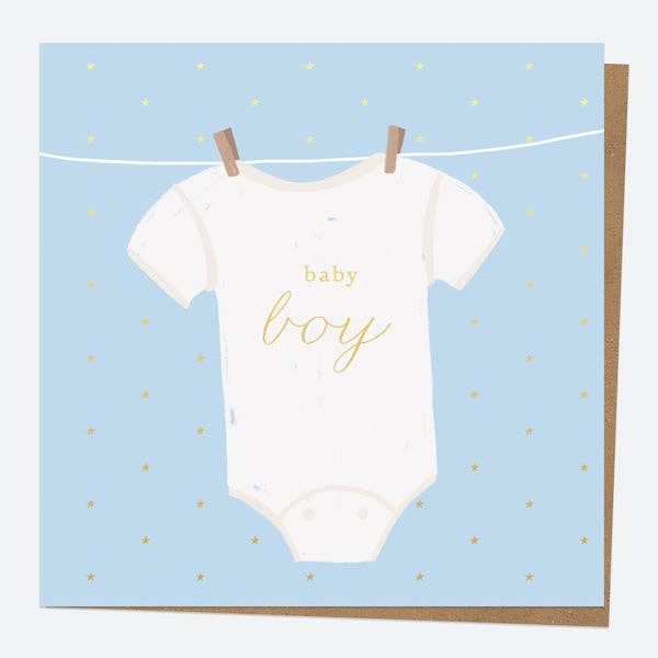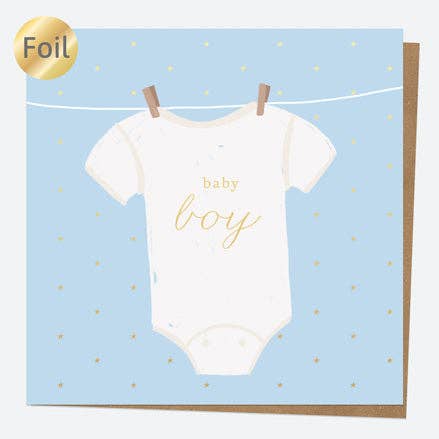 Luxury Foil New Baby Card - Vest - Baby Boy