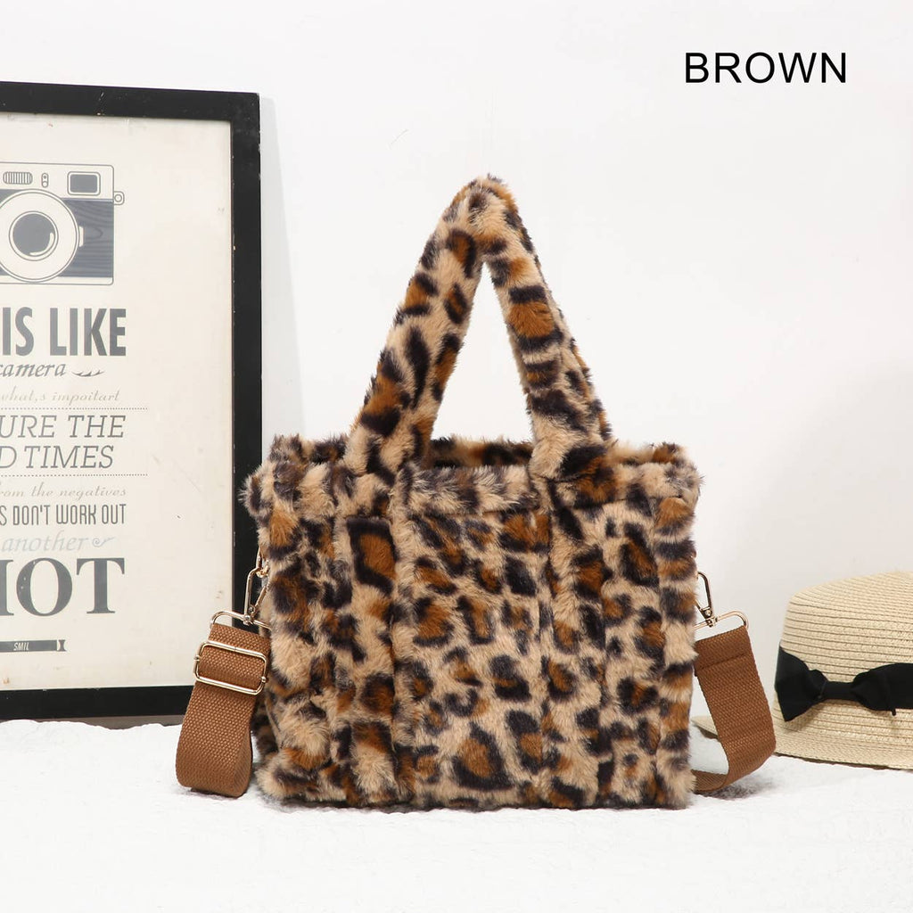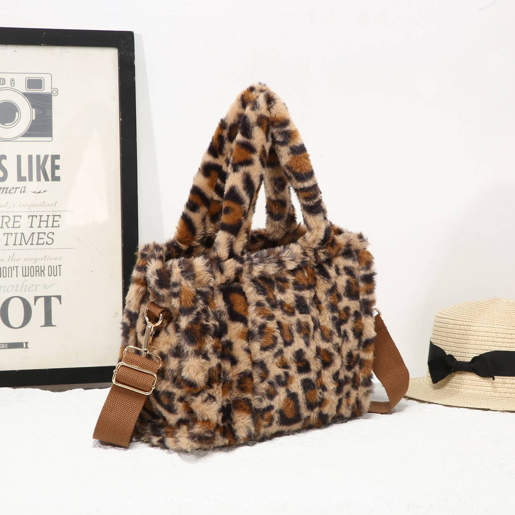 25424 Leopard Print Faux Fur Tote Bag